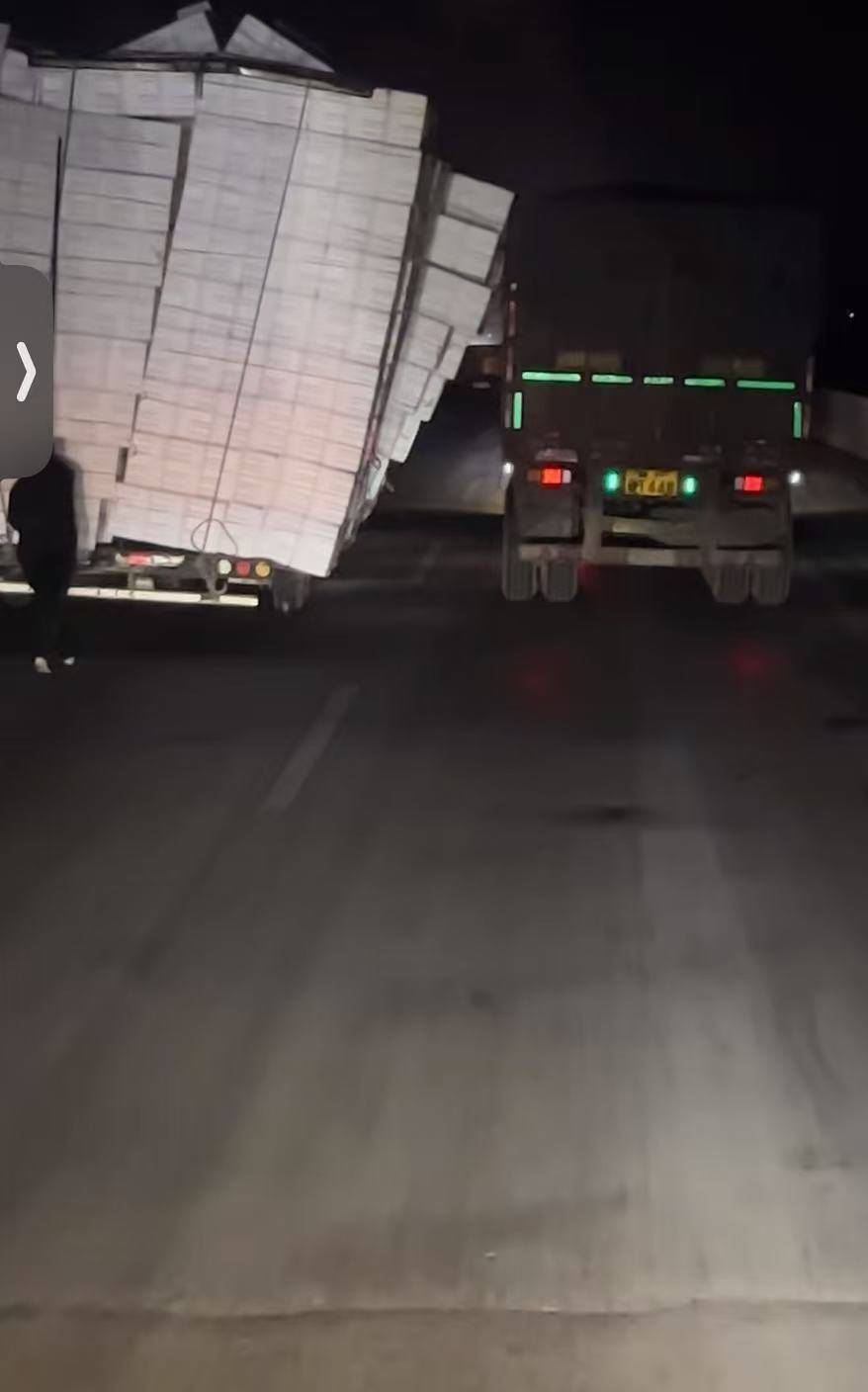 视频拍摄者苑旭康称,4月3日,事发当晚11点半左右,东营与潍坊交界处的道路上,因前方红绿灯处发生拉煤车侧翻,通行车辆排起长队,“那晚风特别大,一辆拉泡沫的货车被大风吹得摇摇晃晃,眼看就要倒了。”