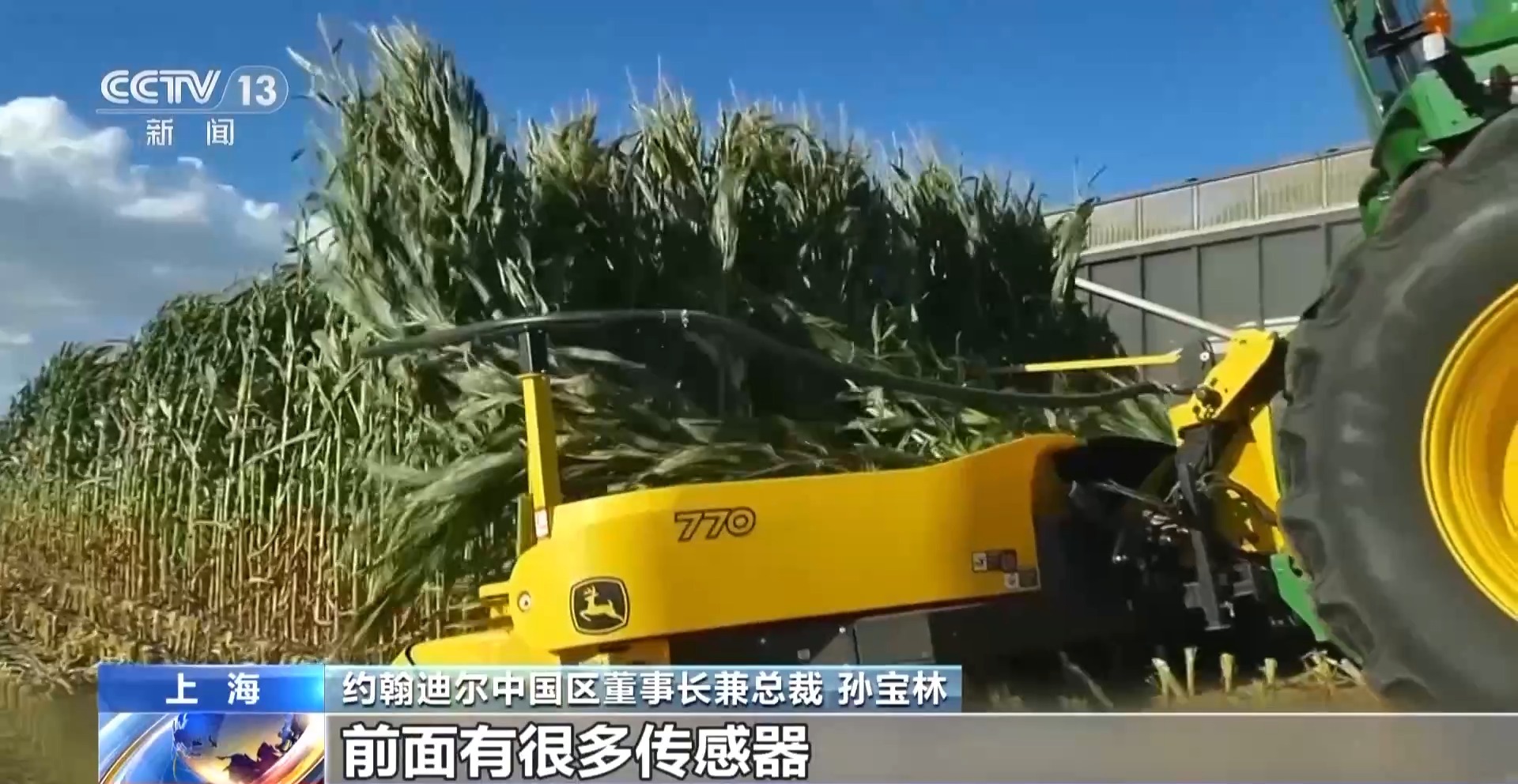 约翰迪尔中国区董事长兼总裁 孙宝林:我们现在农机的发展走向智能智慧化,一个操作手柄就可以实现所有机械操作,并且在收割的过程中,会自动检测饲料的各种成分,然后上传到牧场的平台。