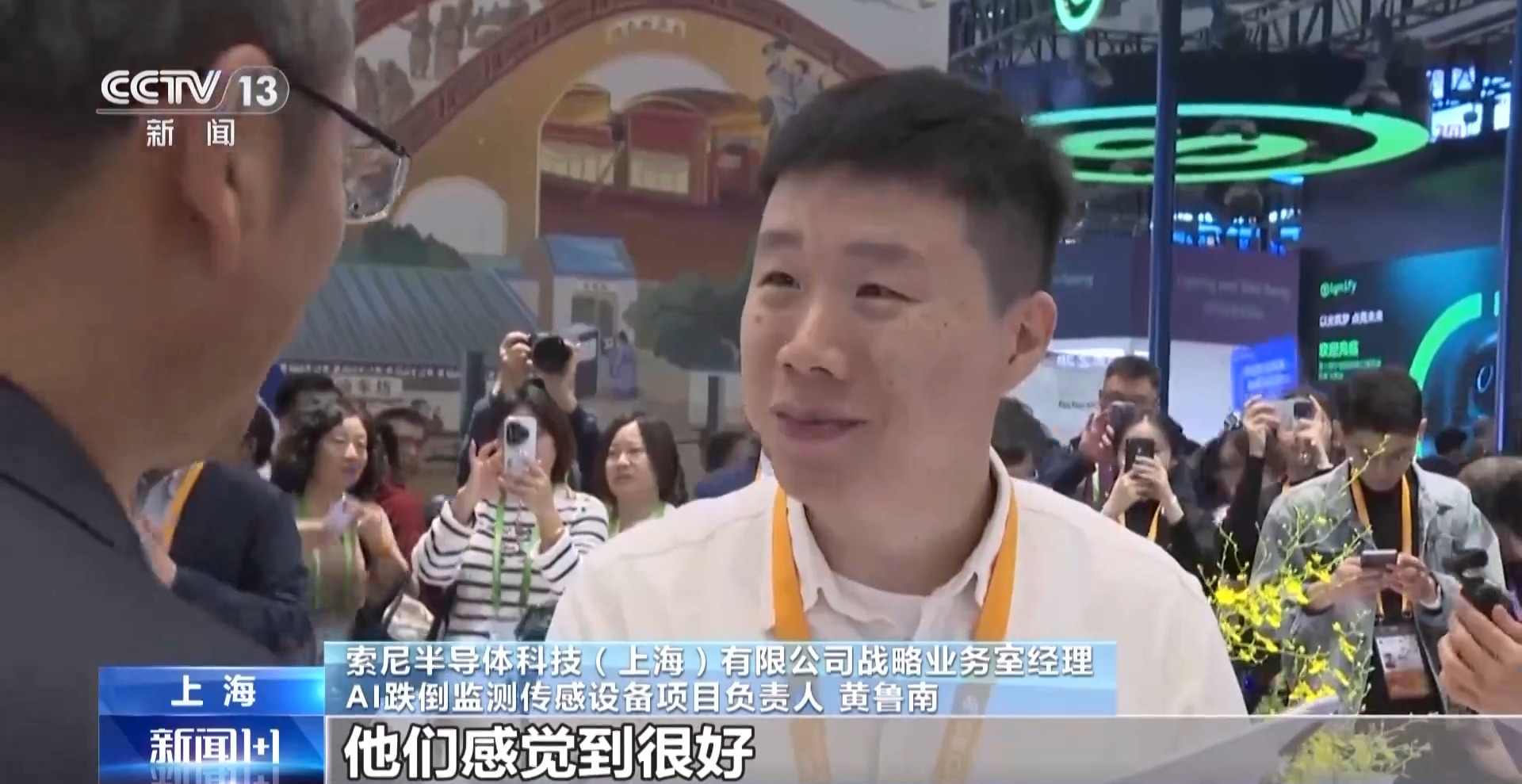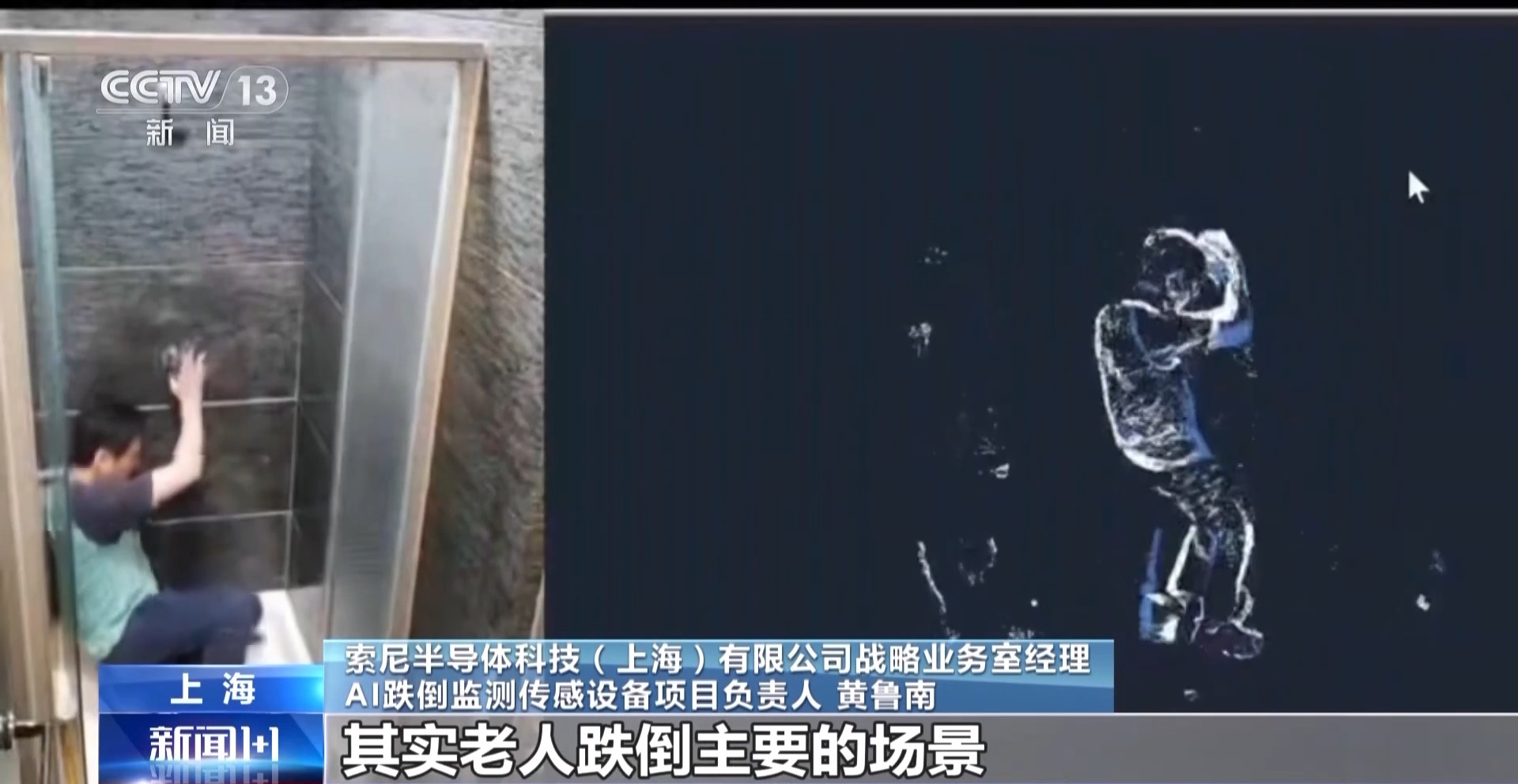 索尼半导体科技(上海)有限公司AI跌倒监测传感设备项目负责人 黄鲁南:我们主要是要保护老人的隐私,因为现在人对隐私也越来越重视,我们这个相机只提取人的轮廓。其实老人跌倒的主要场景,更多的是在洗手间或者浴室容易打滑的地方,而且这样的场景他们一般穿的衣服会比较少,所以我们在这样的场景下,用比较模糊的影像就可以精确监测到他有没有跌倒,同时保护了他的隐私。