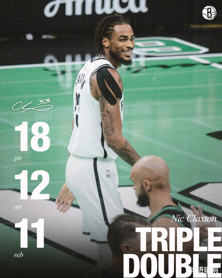 在这场大爆冷比赛中,篮网数名球员值得夸赞,其中首发中锋克拉克斯顿13中7高效贡献18分11篮板12助攻,生涯首次拿到三双数据,也成为21世纪以来篮网首位拿到三双的中锋。