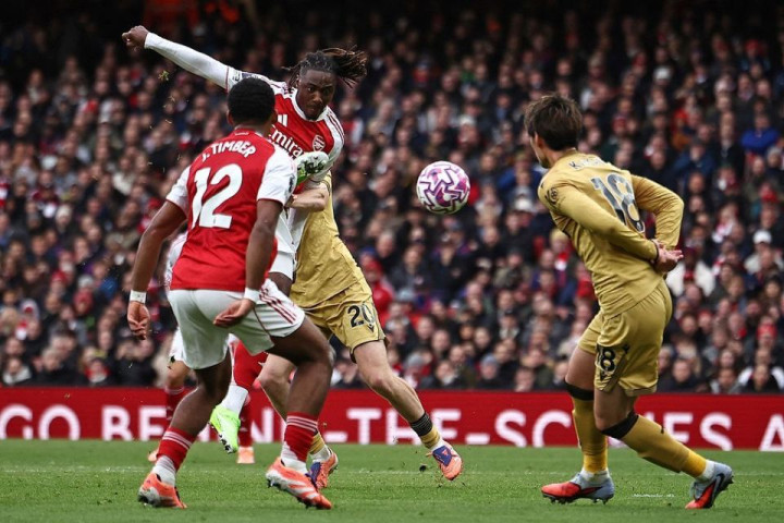 这是埃泽夏窗6930万欧元加盟阿森纳后,代表枪手在英超打进的首粒进球。