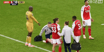 第69分钟,加布里埃尔争抢头球,随后撞到立柱痛苦倒地。
