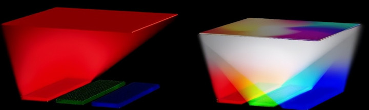 这是因为RGB-Mini LED的底层发光技术是R红、G绿、B蓝三色混光,单色只开一个灯珠就行,但在显示多色画面时,就需要三个灯珠都开启先混成白光,再靠屏幕色阻滤色。这就导致色彩丰富度会衰减,视觉体验不一致。